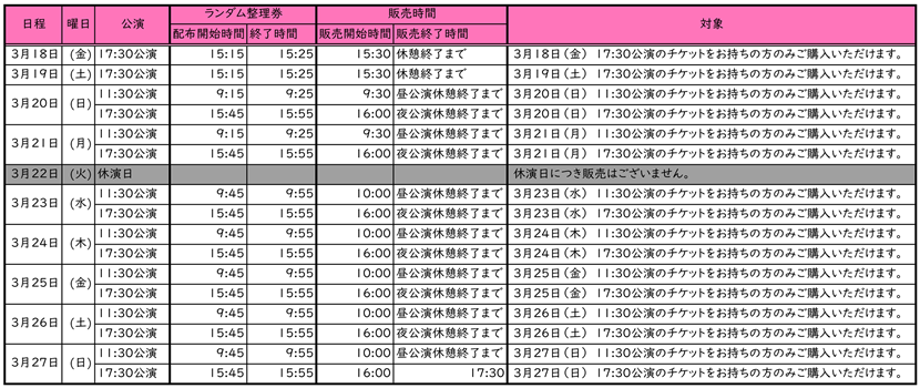 ※都合上、3月27日(日)17時30分公演は、開演後にグッズ販売を終了とさせていただきます。